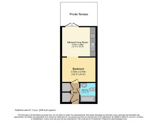 The property comprises an open-plan living with a bedroom and a separate bathroom.