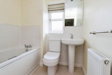 Family bathroom with low level WC, hand basin and bath.