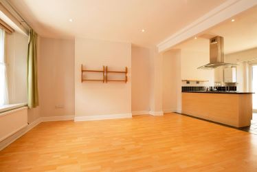 Enter the property from the front to the entrance lobby and further door through to the main living room and kitchen. This is an open plan space for modern living with a convenient downstairs WC/cloakroom. The living area has a wood laminate flooring and lovely picture window to the front. There are stairs to the first floor and an open plan walk through to the fitted kitchen with slate tiled floor, fitted units with large range style 5 ring oven and hob and suspended extractor fan over. There is also a built in dishwasher and space for a fridge freezer as well as the cloakroom/WC with plumbing for the washing machine.