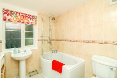On the first floor there are two spacious double bedrooms, the larger of which has an original fireplace. The third bedroom is a single with en-suite wc and hand basin. This room also contains a large airing cupboard which houses the combination boiler.
