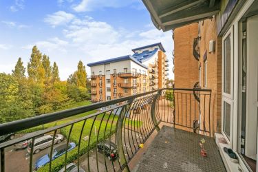 Inside the home there are two double bedrooms with an en-suite shower room to the main bedroom. The property is further equipped with a family bathroom and a good sized kitchen with fitted units. It benefits from a balcony that looks out to Kings Meadow Park and the flowing River Thames.