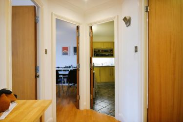 Upon entering this beautiful apartment, you are greeted with a warm entrance hall with plenty of storage space. There is shelving for coats, hats and shoes. There is a separate boiler room with storage for a vacuum cleaner and mops etc. The hallway leads to a spacious living room, with plenty of natural light for comfortable and practical living. The kitchen is decorated in a neutral fashion comprises of a range of matching wall and base units with work surfaces incorporating inset sink unit, electric hob with overhead extractor, electric oven, dish washer, fridge-freezer and further space for appliances. The hallway leads you further to the one double bedroom of generous proportions and a neutral three-piece family bathroom.