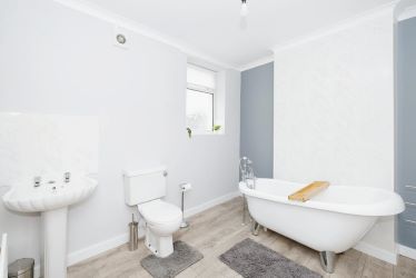 The house is entered through a UPVC door into the neutrally decorated hallway, where you will find useful under stair storage. To the right you will find a doorway into the well proportioned Lounge, with a door then taking you into the Kitchen. This lovely modern Kitchen has wooden worktops and a range of eye level and base level units. There is an integrated electric hob with extractor over, integrated oven, space for a fridge, and door to the yard. Taking the stairs to the first floor landing, you will come to a good-sized Bedroom, then you will pass a handy Utility Cupboard and a lovely spacious Bathroom. The Bathroom has a freestanding bath, toilet, and pedestal wash hand basin.