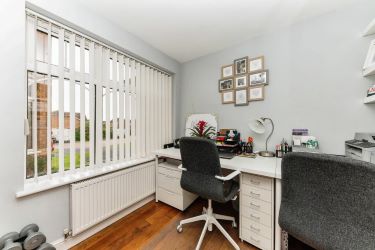 Study - Fitted cupboards and desk, hardwood floor