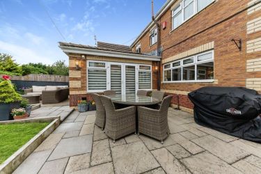 To the rear aspect, you'll be led onto the lovely, large and enclosed rear garden with fabulous patio area, ideal for outdoor dining and entertaining. To the front of the property you'll find a spacious double driveway and access to the extensive double garage with electric doors. There is a security camera installed to the front of the property.