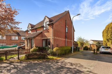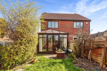 This lovely 2 bedroom semi detached corner house in a quiet cul-de-sac area, has a side drive to the rear garden. The front of the property has a path leading to the porched front door leading into the lounge which is a good size with open plan stairs leading up the the first floor. The kitchen has room for a large fridge freezer and washing machine, with large glass patio doors leading into a spacious conservatory which is ideal for dining and lounging, looking out onto the lawned rear garden.