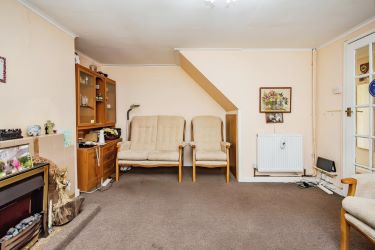 LOUNGE 13'8" x 8'4" approx. UPVC double glazed window to the front. Tiled fireplace. This room is currently used as a bedroom.