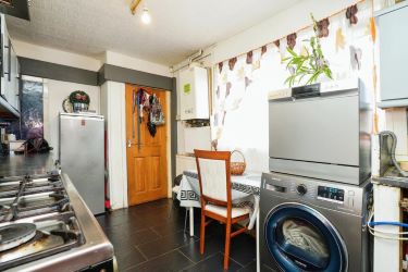 Kitchen: To the left of the entrance is a well-equipped kitchen with ample storage in the wall and base units. It features a stainless steel sink, oven, hob, and provides access to the rear garden.