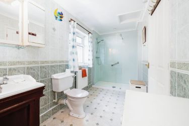 Upstairs, there is a second bedroom with fitted bedroom furniture, a third spacious bedroom and family shower room. There is also a walk-through bedroom.