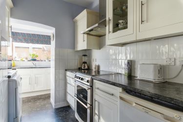Entering the property, there is storage space below the stairs and a door from the hallway leading into the lounge area to the front of the house. The through lounge has a bay window to the front and feature fireplace to one side and dining area at the rear which has space for a table & chairs etc. There are double glazed patio doors leading out to the rear garden. There is a separate kitchen with cupboard space to three sides, gas cooker and space for tumble drier & plumbing for washing machine. There is also a door at the far end leading out to the rear garden.