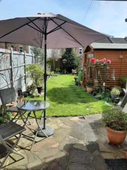 Outside - There is a gated paved front garden area. The private rear garden is a fantastic space with a patio leading onto the lawn surrounded by mature shrubs. There is also a wooden summerhouse, which also has the benefit of electric plug sockets and a greenhouse to one side.