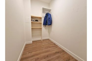 A stylish 3-piece bathroom suite with a shower over the bath provides a relaxing retreat. Added convenience comes with a utility cupboard with plumbing for laundry appliances and large walk in storage room in the hallway.