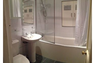 Bathroom 6'8" x 5'3" The bathroom comprises a three piece white suite with mains powered shower over bath.