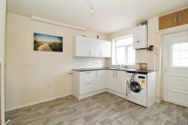 Kitchen: A sizeable kitchen featuring ample storage space, dining space and direct access to the rear garden.
