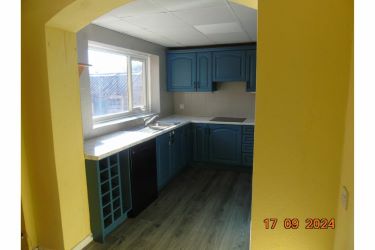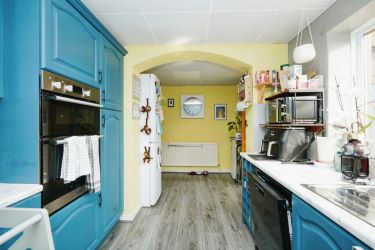 Wooden flooring, two double glazed windows, space and plumbing for washing machine, radiator and door to rear garden area.