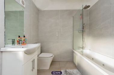 The property features a welcoming entrance hallway with a guest WC, a bright and airy living room with dual-aspect windows, and a sleek, contemporary kitchen designed for modern living. Upstairs, there are three well-proportioned bedrooms and a chic family bathroom.