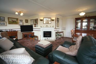 6.00m x 5.50m large open plan living / dining room with fireplace and lots of space for sofas and table and chairs.