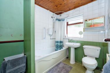 Upon entering, you are welcomed by an entrance hall leading to a comfortable living room, perfect for family gatherings. The ground floor also includes a kitchen and a bathroom, offering further scope for improvement.