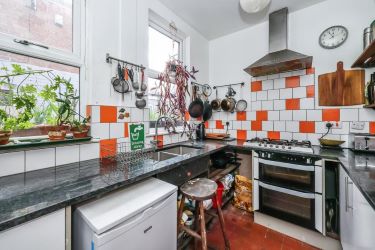 Hall continues to internal stairs to the cellar and to a second reception room / dining room with log burner and double glazed doors leading to the generously sized garden. Fitted kitchen, with double glazed windows and tiled flooring.
