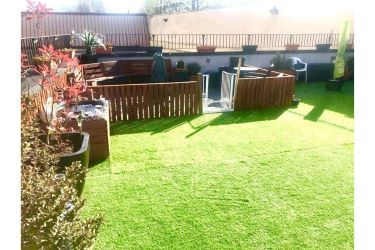 A secure roof top garden with seating/ astro turfed lawned area and planting provides a superb private sunny outside living space for residents.