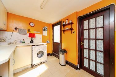 To the rear of the property is a fitted kitchen, offering a practical layout with worktop and cupboard space, and potential for refurbishment to suit modern tastes. Beyond the kitchen is the ground floor bathroom, complete with a three-piece suite. This area of the home could be reimagined to enhance flow and functionality, depending on preference and budget.