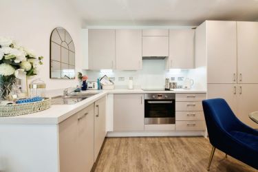 Accommodation comprises entrance hall with inbuilt storage, leading into the open plan reception/kitchen with direct access onto the delightful enclosed private terrace and ample space for both relaxing and dining. The kitchen area comprises a modern range of matching wall and base units with work surfaces incorporating inset sink unit, induction hob with overhead extractor and electric oven below, and further space for appliances. There is a well sized double bedroom with useful inbuilt storage, plus a stylish bathroom with white three piece suite and elegant tiling.