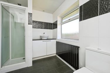 Upstairs, four well-proportioned bedrooms offer ample space for all family members. The centrally located family bathroom is easily accessible from all rooms, enhancing the home’s practical layout.