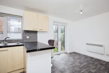 To the rear of the property, you’ll find the fitted kitchen. With plenty of storage and workspace, the kitchen is a practical area for preparing meals and includes space for necessary appliances. Its layout ensures easy access to the rear garden, creating an effortless flow between indoor and outdoor spaces, ideal for summer dining or relaxing in a private setting.
