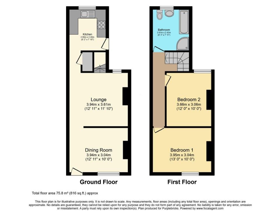 Upstairs, the property offers two good sized double bedrooms, each with ample natural light and potential to be transformed into relaxing retreats. The first floor also houses a large bathroom with bath and separate shower, currently well positioned but ready for upgrading to suit modern tastes.