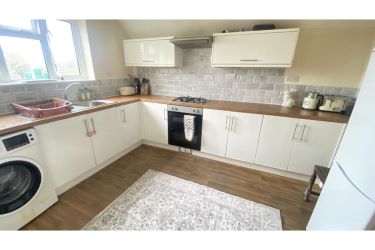 A generous kitchen with rear aspect window and fitted with a range of wall and base units and integrated cooking appliances. The spacious room provides adequate space for a dining.