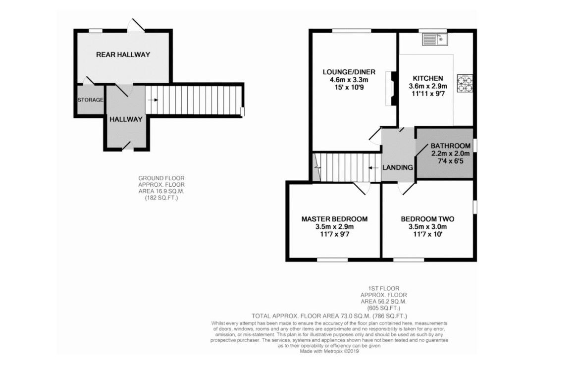 With stairs rising to the first floor and having a radiator, ceiling light point and door accessing the rear Hallway.