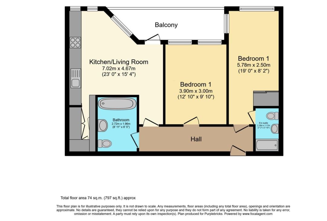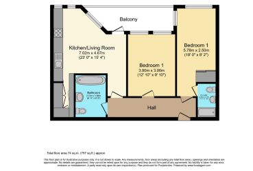 Step inside to discover a bright and expansive open-plan kitchen/living area (7.02m x 4.67m / 23'0" x 15'4"), complete with integrated appliances and sleek finishes. Both double bedrooms are well-proportioned, with the larger measuring 5.78m x 2.50m (19'0" x 8'2") and benefitting from a stylish en-suite shower room. The second bedroom (3.90m x 3.00m / 12'10" x 9'10") is serviced by a modern family bathroom, perfect for guests or sharers.