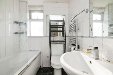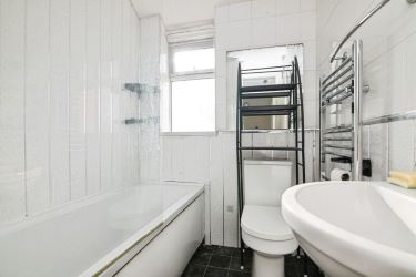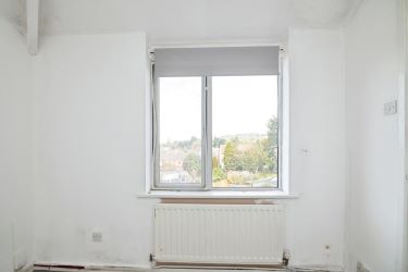 To the first floor, a central landing leads to two well-proportioned bedrooms and a family bathroom. The main bedroom is a generous double, offering ample space for wardrobes and additional furniture. The second bedroom is ideal as a single room, nursery, or home office. The bathroom is fitted with a white suite comprising a bath with shower over, wash hand basin, and WC, all presented in good condition.