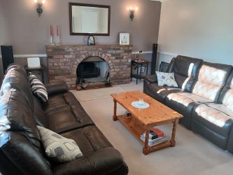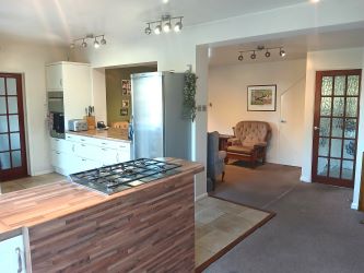 Step inside and you'll find a light-filled interior with well-proportioned rooms throughout. The ground floor features a welcoming entrance hall, downstairs toilet, a large living room with open fire, open plan well equipped kitchen, with pantry, dining area and further lounge area, with garden views. Utility room with addition toilet. Upstairs, there are three double bedrooms all with fitted wardrobes and a large modern family bathroom with separate shower cubicle. A walk in airing cupboard. Access to large boarded loft space.