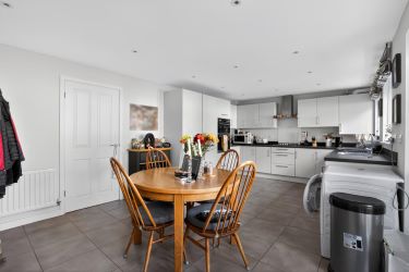 The ground floor comprises a welcoming entrance hall with a downstairs W.C., leading to a bright and open living room with ample space for both lounge and dining areas. The modern kitchen is fitted with contemporary units and provides direct access to the rear garden, creating a practical and sociable layout for family living and entertaining.