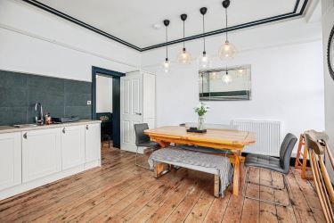 Recently renovated, the home offers high ceilings, original floorboards and a decorative fireplace, alongside bright, modern finishes. The ground floor includes an entrance hall with understairs storage, two large bedrooms, a utility area and modern shower room. Upstairs, a welcoming lounge with feature fireplace, a spacious fitted kitchen/diner with stunning views, and the third bedroom.