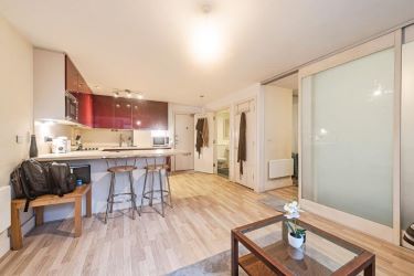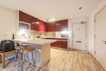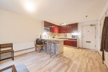 The apartment opens into an open-plan living, dining and kitchen area, which provides a spacious and versatile layout, ideal for both relaxing and entertaining. Large windows bring in plenty of natural light, enhancing the modern feel of the space.