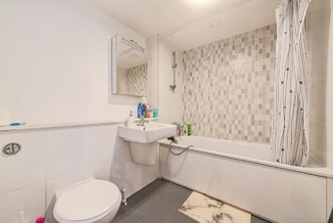 A modern family bathroom with a sleek white suite completes the accommodation, featuring a bath with shower over, WC and wash basin.