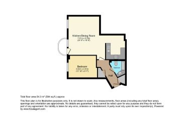 Located in the highly sought-after West One Plaza development, this 5th floor stylish one-bedroom apartment offers contemporary city-centre living at its finest, with fantastic views over the city. The property features a spacious open-plan kitchen and dining area measuring approximately 7.51m x 5.70m (24' 8" x 18' 8"), providing ample space for both cooking and entertaining. The well-proportioned double bedroom, measuring 3.60m x 2.91m (11' 10" x 9' 7"), benefits from plenty of natural light. A modern bathroom and a welcoming hallway complete the layout. The total floor area is approximately 54.3 m² (584 sq. ft.).
