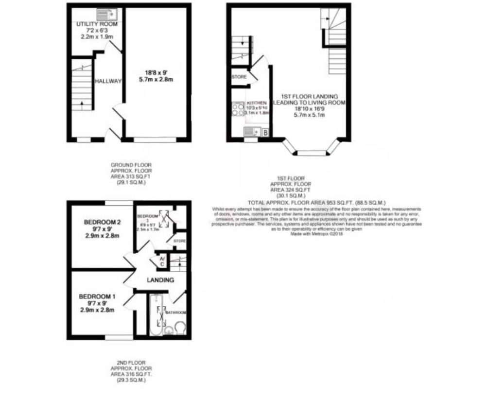 Accommodation comprising, entrance hallway, reception room and utility room, first floor comprising open plan living space and newly decorated kitchen, second floor comprising three bedrooms and family bathroom.