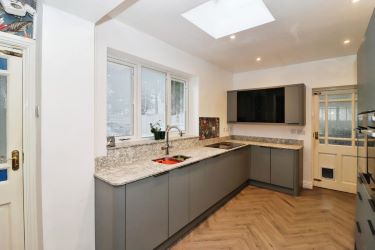 The property boasts a large modern kitchen with handy integrated appliances that are in like new condition with barely any usage since installation of the new kitchen in 2023. The adjacent utility room and WC add extra convenience and access from the kitchen via the garage offers the perfect chance for conversion into a large dining room, study, playroom or for handy extra storage. To the rear there is a spacious bright lounge leading into a delightful conservatory with insulated roof, perfect for enjoying garden views year-round. The lounge also enjoys use of a working burner, offering a further cosy winter retreat.