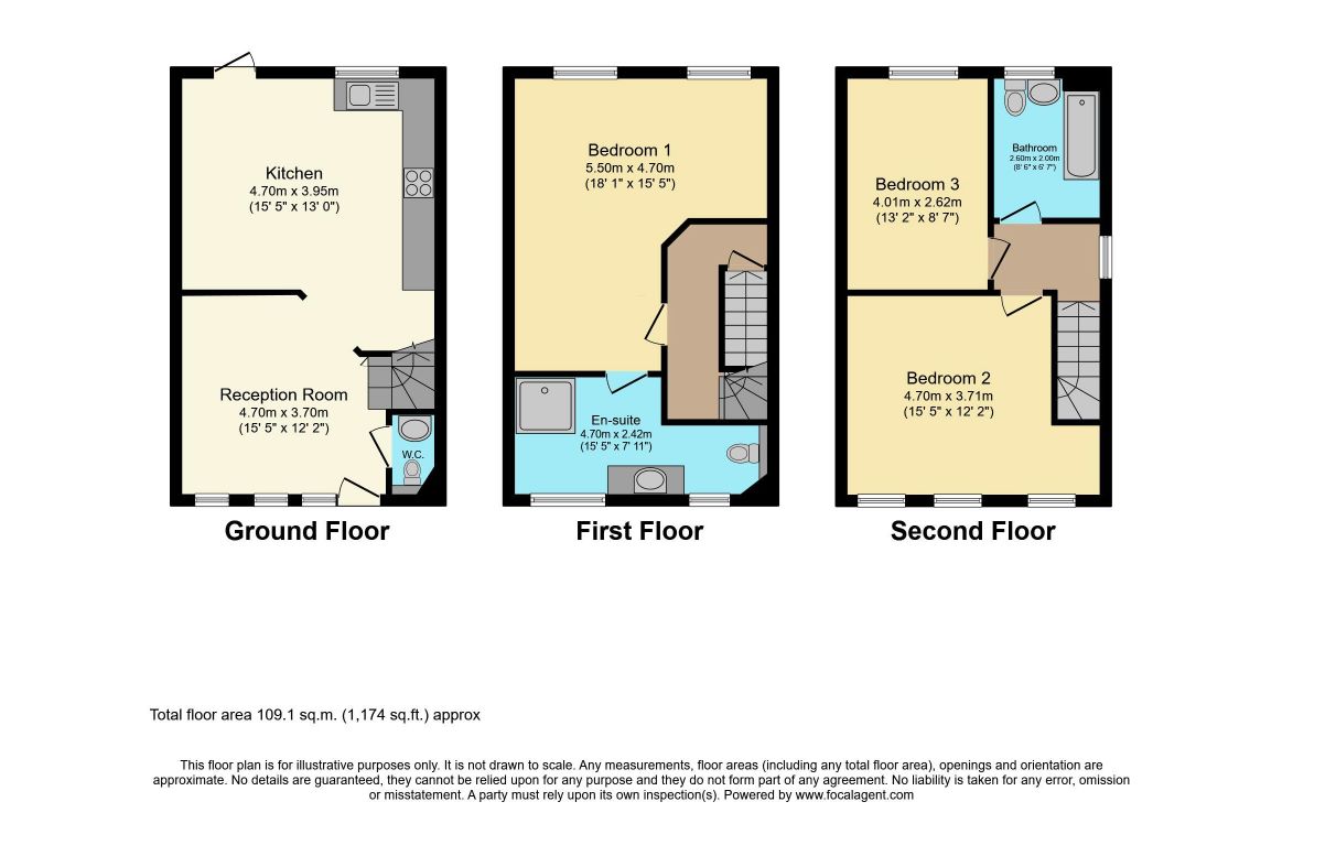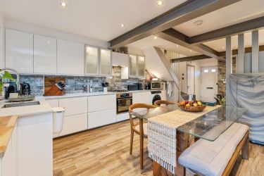 Upstairs, the accommodation includes three well-proportioned bedrooms, with the principal bedroom benefiting from a stylish en-suite shower room. A contemporary main family bathroom and an additional ground-floor WC add further practicality for families and guests alike.