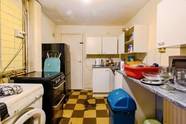 The accommodation is arranged over two floors. The ground floor comprises a spacious living room, providing a comfortable reception space, and a separate fitted kitchen with ample storage and worktop space. The layout is practical and well suited to long-term tenancy.