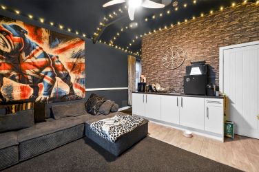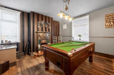 The extensive ground floor provides a wealth of flexible space. There is a welcoming entrance hall leading through to a spacious lounge and two additional reception rooms, offering excellent areas for relaxing, entertaining, or alternative uses. A dedicated bar area adds a unique feature, ideal for social gatherings or hospitality-style use. The kitchen is generously sized and supported by a separate utility room, providing practical everyday functionality.