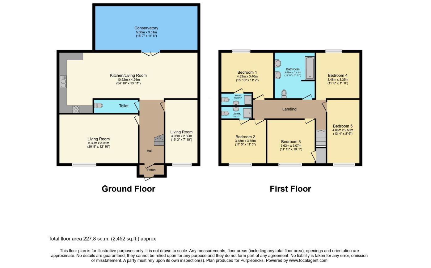 To the first floor are five bedrooms, including two with en-suite facilities, along with a family bathroom.