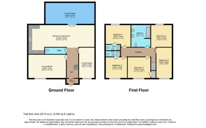 The ground floor provides two reception rooms, a kitchen/dining area and a downstairs cloakroom, offering flexible living space suited to family life or reconfiguration.