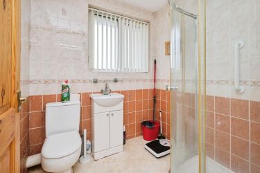 Suite, featuring a shower cubicle, wash basin, and WC