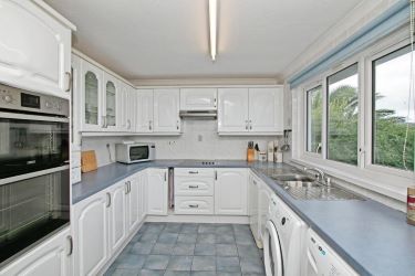A welcoming entrance hall leads to all principal rooms, including a bright and airy living room with views over the front garden. The kitchen is well-proportioned and offers ample storage and workspace. There is also a conservatory that overlooks the rear garden.