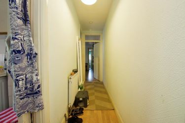 There is a family bathroom with shower over the bath, w/c, hand basin and towel rail.