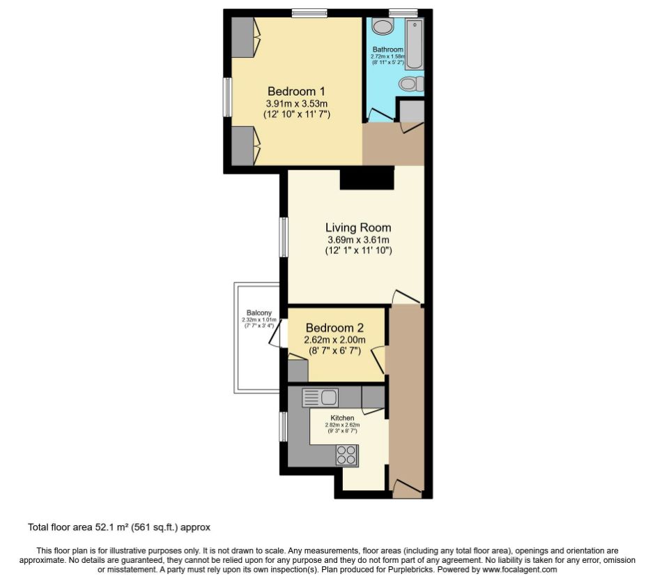 The property has a secure communal entrance for residents. Entering the flat, there is a hallway with access to the kitchen which has cupboard space to three sides with space & plumbing for a cooker, fridge-freezer and washing machine. There is a spacious living room and two bedrooms both with built in wardrobes to one side. The second bedroom benefits from access to a private balcony.